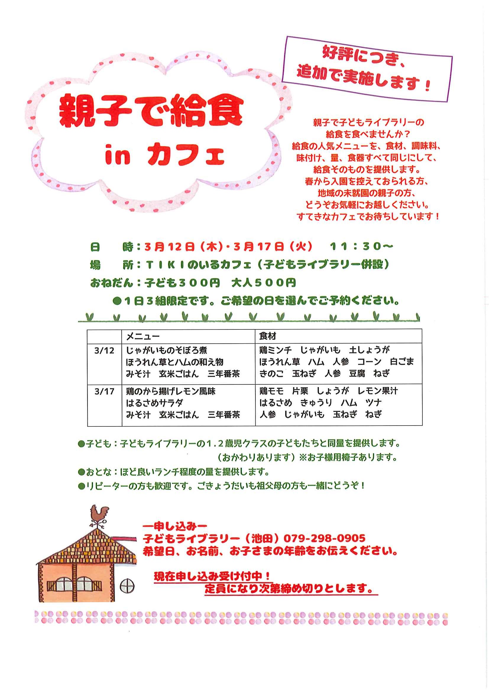 素敵なカフェで、親子で子どもライブラリーの給食を食べてみませんか?